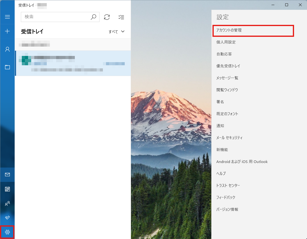 左下の設定アイコン(歯車のマーク)をクリックし、設定メニューから「アカウントの管理」を選択します。